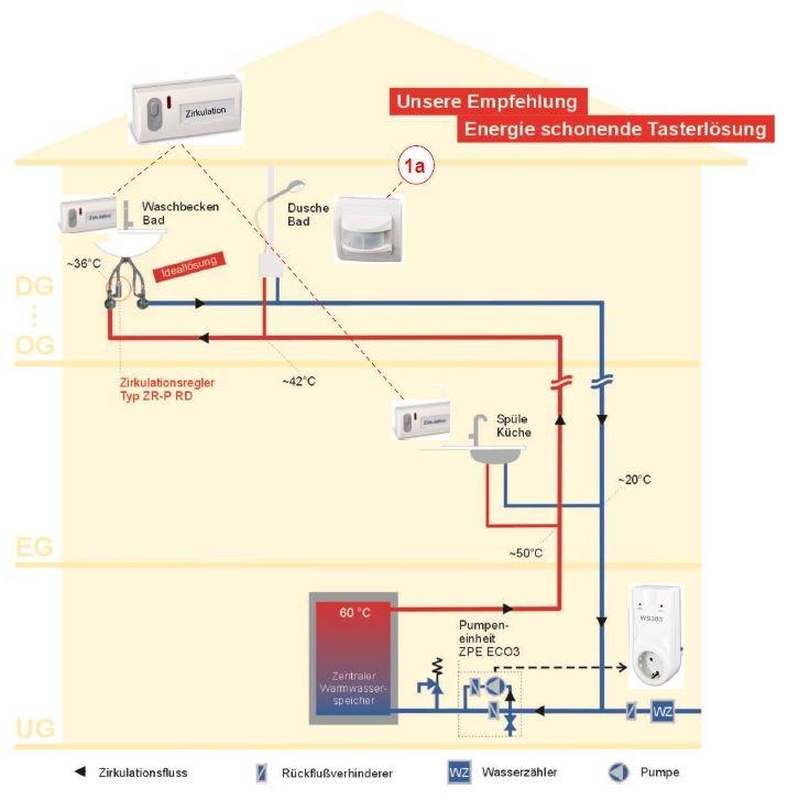 Lösung bei Legionellen Problemen, fehlender Drittleitung, Wasserzählern in der Zuleitung (z.B. im MFH), oder defekter Begleitheizung